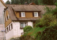 zweifellos auf Reichenbacher Markung am Heselbacher Weg. Dort, im Hundsgrund, könnte Jordan Wetzel also kurz nach 1716 sein Haus gebaut haben, das dann über den Sohn, den Maurer Franz Wetzel (1700 - 1765, F 1027), an die Enkeltochter und deren Mann, Johann Michel Hornberger, gekommen sein könnte (L). Als Hornberger 1765 seinerseits ungefähr einen Morgen wilden Feldes kauft, liegt dieses "unter- und oberhalb seinem Hauß im Hundsgrund am Heselbacher Weeg" (XXXVI). Damit ist die Lage des Hauses, das der Maurer 1769 besitzt, hinreichend genau beschrieben. Im Handlohn- und Weglösebuch des Jahres 1789 tauchen nun zwar die gut vier Morgen Land, die schon 1769 in der Hand von Johann Michael Hornberger sind, wieder auf (darunter insgesamt gut drei Morgen im Hundsgrund), nicht jedoch das erwartete Haus (XXII). Die Erklärung, dass das Haus - wie sehr alter, noch auf die Klosterzeit zurückgehender Besitz - frei von Handlohn- und Weglöse gewesen sein könnte, scheidet wohl aus. Auch kann eine Zerstörung des Hauses durch einen Brand eigentlich keine Erklärung sein, zumindest dann nicht, wenn das Haus, wovon man wohl ausgehen muss, alsbald wieder errichtet wurde - dann wäre es durch einen der vielen Nachträge, die das Buch hat, auch aufgeführt worden. Es lässt sich also vorläufig keine Erklärung für das Fehlen des Hauses finden. Auch im Falle des Hornberger-Besitzes gibt es zwei Nachträge: 1791/92 wird die eine Hälfte an den Sohn erster Ehe, Johann Christian Hornberger (1763 - 1815), überschrieben und 1792/93 die andere Hälfte an den Sohn Johann Georg Hornberger (1773 - 1823) aus der zweiten Ehe des Vaters mit Sybilla Haist (1732 - 1808). Viele Jahre später, 1810/11, tragen die beiden Stiefbrüder einen Rechtsstreit aus über die Nutzungsrechte an einem Brunnen (LVII); dabei wird deutlich, dass inzwischen jeder der Brüder ein Haus besitzt, und zwar Johann Georg das Haus 64 (mit einem Brunnen, der schon 1769 genannt wird) und Johann Christian ein Haus auf der anderen, westlichen Seite des Heselbacher Wegs, wahrscheinlich das Haus 58. Das Haus 64 scheint dann über den früh verstorbenen Maurer Georg Friedrich Hornberger (1792 - 1838), dem Sohn des Johann Georg, an seine Kinder Matthias und Magdalena (L) gegangen zu sein, die der Kataster aus der Zeit um 1840 als Eigentümer des Hauses 64 ausweist. Das nicht vor 1792/93 erbaute Haus 58 ist dagegen im Besitz des Maurers Johann Georg Hornberger (1798 - 1867), einem Sohn des Johann Christian (LII). Das alte Haus 64 wurde 1978 abgebrochen, das Grundstück ("Bergwiese") neu bebaut. |